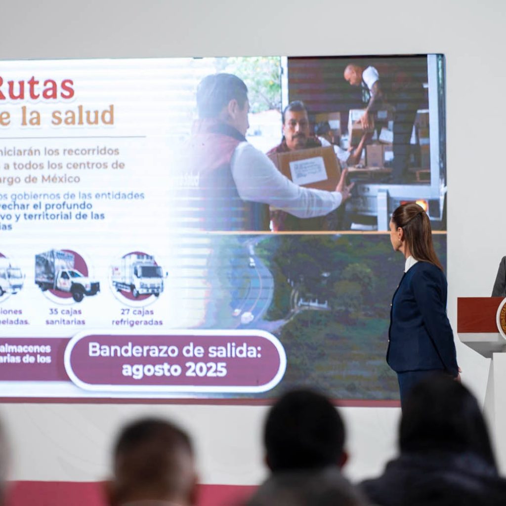 Ciudad de México, 16 de julio de 2025. Rutas de la Salud es un sistema de distribución de medicamentos e insumos médicos a los hospitales y Centros de Salud que fortalecerá al IMSS Bienestar y que, a partir del mes de agosto, recorrerá todo el país; informó la presidenta Claudia Sheinbaum Pardo.