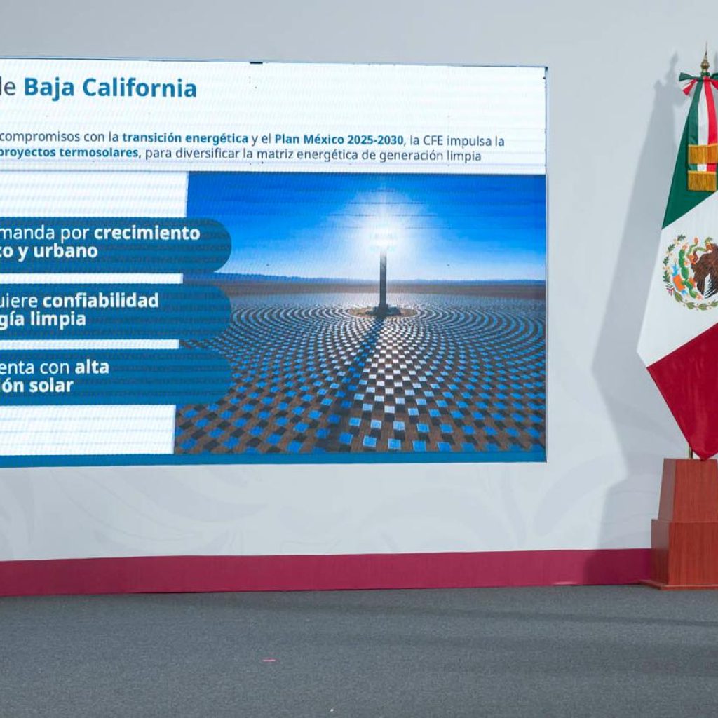 “En la idea de que tenemos que ir impulsando cada vez más las energías renovables en nuestro país, se tomó la decisión de que en Baja California Sur haya una planta termosolar, que son plantas de generación eléctrica, que ya tienen algún tiempo, pero son pocas en el mundo. Y es algo muy importante para el país, porque nos ponemos a la vanguardia, también, de las energías renovables”, puntualizó.